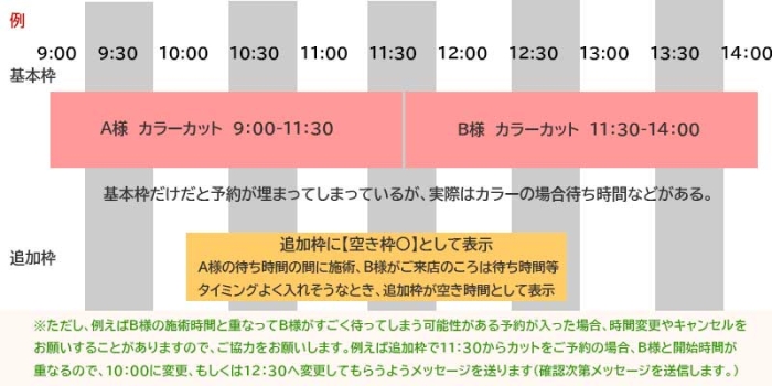 必ずしも基本枠が優先というわけではございません。すべてのお客様の待ち時間が少ないように調整いたします。ですので、後からご予約をいただいた方に時間変更などのお願いをすることがあります。予定が決まりましたら、お早めにご予約をお願いいたします。